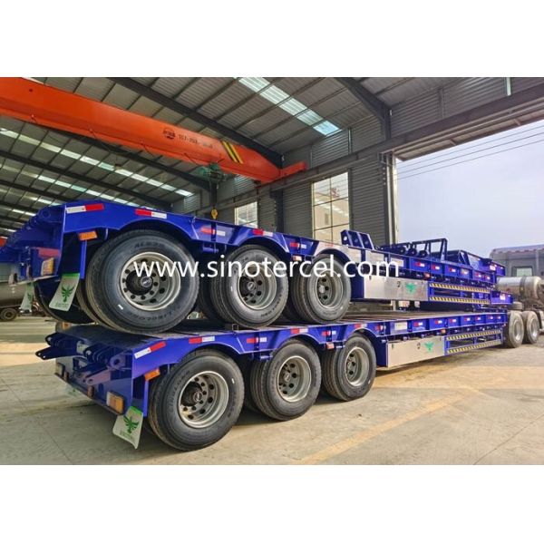 A low bed semi trailer , also known as a lowboy trailer or low loader trailer , is a type of heavy-duty trailer commonly used for transporting oversized and heavy equipment. It is designed with a lower deck height than traditional trailers, allowing for easier loading and unloading of tall and heavy cargo. SINOTERCEL's Low Bed Semi Trailer is the perfect solution for your heavy-duty transportation needs.